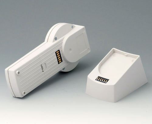 BOITIER DE MESURE P, Vers. I Boitier pour appareil de mesure avec partie en creux pour des claviers. Fenêtre pour affichage numérique ou analogique. Logement piles à encliqueter pour changer rapidement les piles. Logement piles pour 1 x 9 V ou 1 pile ronde C 1,5 V avec paillette. Accessible de l'extérieur.