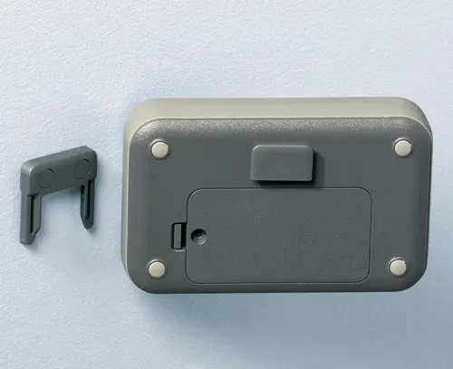 Sert comme clip et/ou fixation murale. Montage orienté en largeur or en longueur (taille S seulement en longueur), pour échanger les piles, le clip se laisse enlever sans problème. Deux trous de montage diamètre 4,2 mm nécessaires.