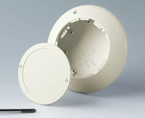 Module : avec fermeture à baïonnette, encliquetable fixation. Si nécessaire, sécurité avec 2 vis. Bossages de fixation pour les circuits imprimés en partie sup. et inf. Partie inf. avec support intégré pour compartiment piles (acc.). Élément de fermeture de la partie inf. indispensable (couvercle / couvercle de comp. piles / socle) - article séparé voir accessoires.