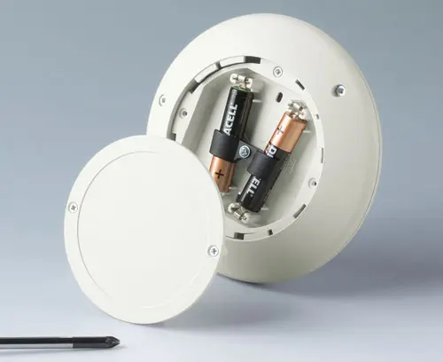Module : avec fermeture à baïonnette, encliquetable fixation. Si nécessaire, sécurité avec 2 vis. Bossages de fixation pour les circuits imprimés en partie sup. et inf. Partie inf. avec support intégré pour compartiment piles (acc.). Élément de fermeture de la partie inf. indispensable (couvercle / couvercle de comp. piles / socle / socle 30° ou socle 55°) - article séparé voir accessoires.