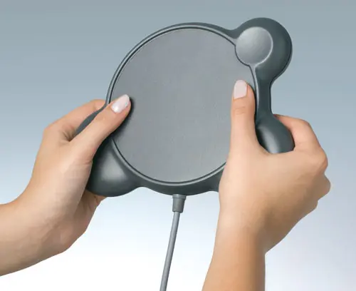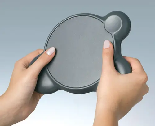 Un boitier pouvant être tenu et manipulé des deux mains. Conception du boitier en deux parties avec disposition symétrique des zones de saisie. Surface en creux pour les claviers à membrane. Zone en creux séparée pour fonction spéciale. Bossages de fixation pour circuit imprimé dans la partie supérieure.