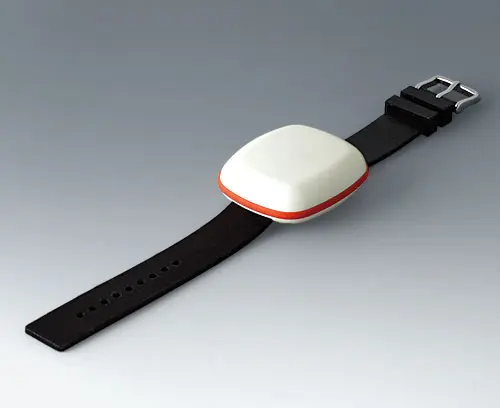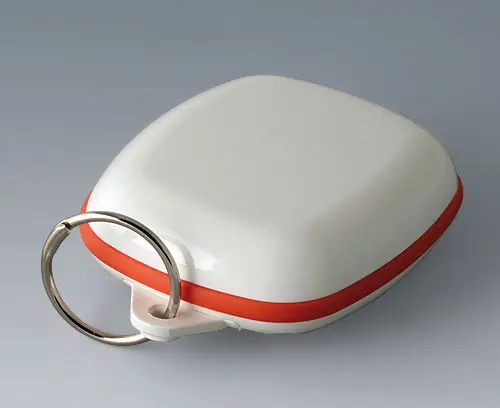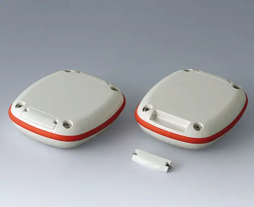 Socle de fixation pour circuit imprimé dans la partie supérieure ; après assemblage du boitier, le circuit imprimé tient tout seul entre les parties supérieure et inférieure. Alimentation interne par pile ronde ou pile bouton sur le circuit imprimé ou, en alternative, utilisation d’une pile rechargeable avec bobine permettant un chargement par induction de l’appareil.