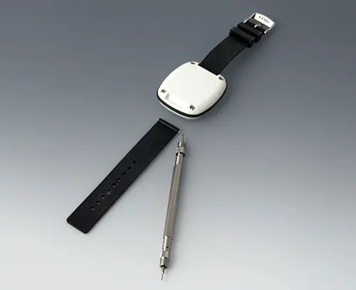 BODY-CASE M, avec zone en creux Boitier moderne pour les petits appareils du domaine des technologies portables. Conception en trois parties dont la partie supérieure et la partie inférieure en poli brillant et un joint en TPV mat. Surface en creux pour clavier à membrane ou feuille décorative.