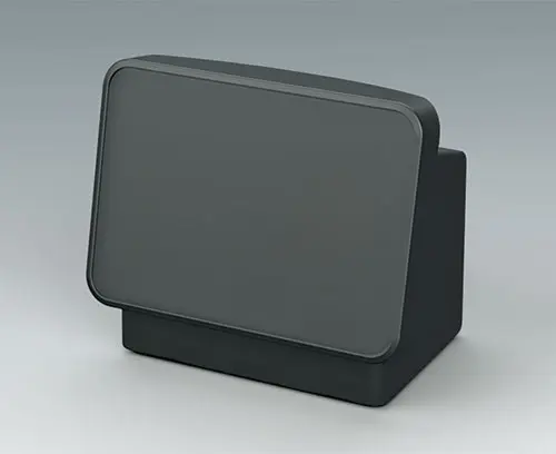 Face avant S À commander avec le corps du boitier COMMUNITEC S. Comprend une zone en retrait pour la protection des claviers à membrane et l'intégration d'écrans grand format jusqu'à 11,5" (29 cm), ainsi qu'une surface plane en partie basse pour les éléments de commande et les connecteurs. Des plots de fixation sont intégrés pour les PCB ou les platines de montage. Montage de la face avant par l’arrière.