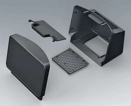 Boitier doté d’une grande capacité interne pour l’intégration de composants volumineux. Ses larges surfaces latérales facilitent l’usinage de connecteurs, de fentes d’aération pour optimiser la dissipation de la chaleur, etc. À l'arrière, une zone encastrée sécurise la connectique et le câblage, tandis qu'une zone en retrait est dédiée à l’étiquetage. Des plots de fixation sont intégrés pour les PCB ou les platines de montage.
