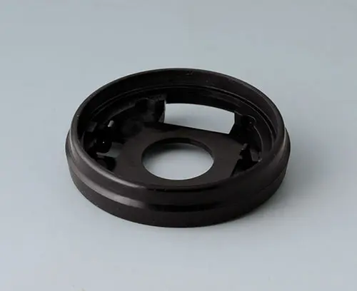 Pour potentiomètres rotatifs et générateurs d’impulsions à bout d’arbre rond, conformes à la norme DIN 41591. Système à noix de serrage favorisant le montage du bouton par l’avant. Alésage sans chanfrein. Le cas échéant, le socle peut être utilisé pour créer un aspect visuel de flottement à la surface de commande (accessoire).