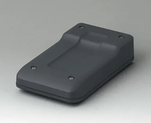 Petit boitier manuel en deux parties avec joint, de conception robuste et ergonomique. Bonne tenue en main grâce au creux pour les doigts dans la partie inférieure. Zone de commande en creux pour la protection des éléments de commande. Bossages de fixation pour les circuits imprimés et les modules dans les parties supérieure et inférieure.