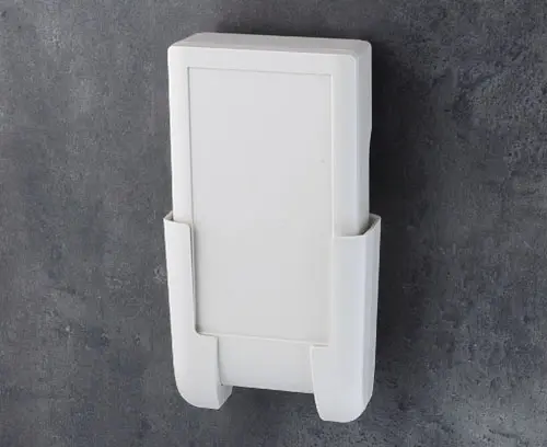 Support spécial pour le DATEC-COMPACT L ; il permet le rangement en toute sécurité d’appareils mobiles fonctionnant par câble ou indépendants. Avec grand évidement pour les connecteurs enfichables. La fixation au mur ou sur des éléments de la construction s’effectue à l’aide de vis usuelles du commerce avec un diamètre de tête de 5,5 à 7 mm.