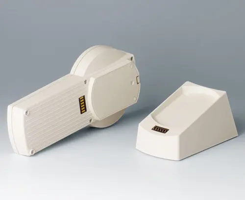 DATEC-CONTROL S, Vers. I Boitier manuel pour multiples utilisations avec une zone de commande maniable et zone d'afficheur pour les modules afficheurs/graphiques. Partie en creux pour claviers. Couvercle du compartiment piles au choix à encliqueter et/ou à visser (compartiment piles acceccoires).