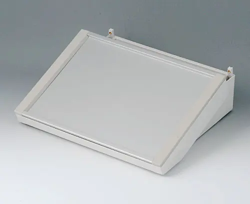 DATEC-TERMINAL L, Vers. I Boitier de base avec emplacement de bornes. La surface portant les éléments de commande à inclinaison ergonomique peut recevoir au choix une plaque profil, un couvercle ou une plaque frontale. Il convient au montage de cartes en format Europe.