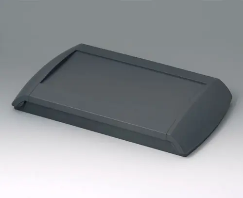 Boitier en quatre parties. La partie inférieure peut être installée directement au mur ; la partie supérieure se visse par le haut, et pour fermer le boitier, utiliser ensuite les deux obturateurs latéraux. Le cas échéant, les obturateurs encliquetés pourront être bloqués de manière à empêcher un accès non autorisé. Zone des éléments de commande en creux pour la protection du clavier à membrane. Bossages de fixation dans la partie inférieure et supérieure. Compartiment piles intégré pour deux piles AA / 1 x 9 V. Le cas échéant, le clapet S (couvercle à charnière) pourra être fixé au choix à droite ou à gauche pour recouvrir partiellement (d’un côté) la zone avec les éléments de dialogue.