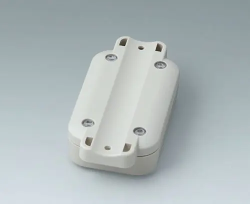 Boitier en matière plastique en deux parties avec partie supérieure plane. Partie inférieure avec pattes intégrées permettant une installation rapide au mur ou avec la fixation sur des tubes / profilés ronds. Construction robuste avec un assemblage par rainure / languette qui a fait ses preuves. Vissage avec des vis inox et entraînement Torx. Bossages de fixation pour circuits imprimés et composants dans les parties supérieure et inférieure.
