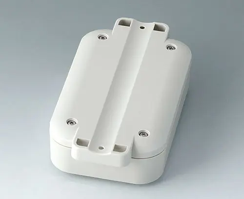 Boitier en matière plastique en deux parties avec partie supérieure plane. Partie inférieure avec pattes intégrées permettant une installation rapide au mur ou avec la fixation sur des tubes / profilés ronds. Construction robuste avec un assemblage par rainure / languette qui a fait ses preuves. Vissage avec des vis inox et entraînement Torx. Bossages de fixation pour circuits imprimés et composants dans les parties supérieure et inférieure.