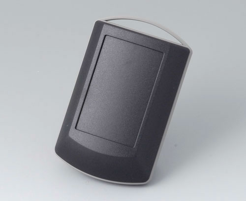 Un boitier en 3 parties avec design ergonomiques. Facile à porter. Collier et dragonne comme accessoire. Bague TPE pour un toucher agréable. Bossages de fixation et socle de fixation pour les circuits imprimés et composants dans la partie inférieure et supérieure. Zone de commande en creux pour la protection du clavier à membrane.