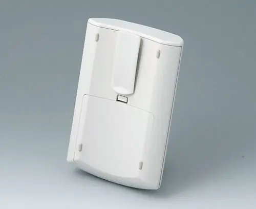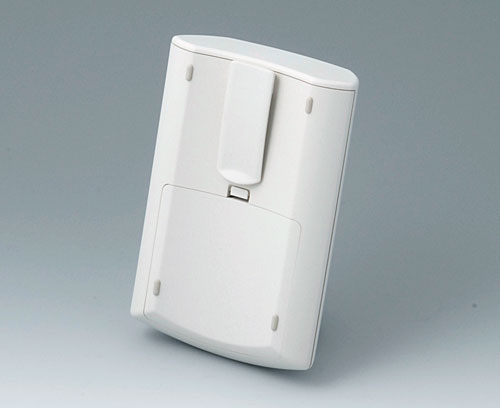 ERGO-CASE M, plate Design de boitier d'une forme ergonomique pour porter au corps. Partie en creux pour la protection du clavier. Zone transversal pour des interfaces individuelles à la partie frontale. Couvercle du compartiment piles à encliqueter (compartiment piles acceccoires).