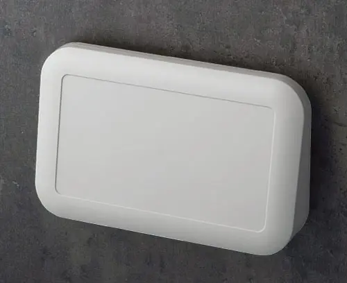 Boitier en plastique en deux éléments avec zone de commande à inclinaison ergonomique de 12°. Partie supérieure avec zone en creux pour protéger le clavier à membrane/la feuille décorative. Construction robuste. Vissage avec des vis inox et entrainement Torx. Joint en accessoire pour le degré de protection IP 65. Bossages de fixation pour circuits imprimés et composants dans les parties supérieure et inférieure. Support mural en accessoire.