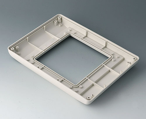 Module : éventail inédit de domaines d'application mobile - pupitre - mural. Avec bossages de fixation pour les circuits imprimés. Élément de fermeture indispensable - au choix compartiment piles / plaque inf. avec cavité / plaque inf. avec réglettes à crans, socle (pupitre), socle (station) ou socle (pupitre/mural) - voir articles sép.