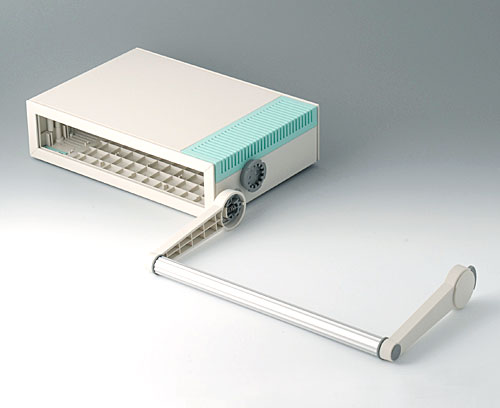 MEDITEC D 160, sans poignée étrier Boitier complet. Idéal pour le montage de circuits imprimés en format doible Europe 233,4 x 160 mm. Deux coquilles identiques sont assemblées l'une contre l'autre. Les obturateurs sont poussés latéralement. Pieds antidérapants en caoutchouc sont vissés pour obtenir une meilleure stabilité.