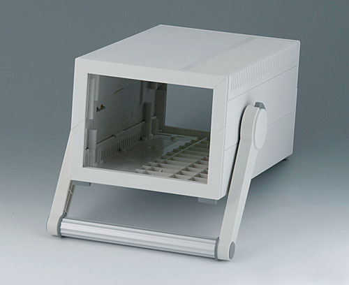 Boitier complet. Idéal pour le montage de circuits imprimés en format Europe 100 x 220 mm ou 100 x 160 mm. Deux coquilles identiques sont assemblées l'une contre l'autre. Les obturateurs sont poussés latéralement. Pieds antidérapants en caoutchouc sont vissés pour obtenir une meilleure stabilité.