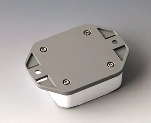 Boitier en plastique en 2 parties avec partie supérieure haute. Partie inférieure avec bride intégrée pour un montage mural rapide ou pour la fixation sur des rails et des profilés tubulaires ou sur un mât. Construction robuste avec assemblage éprouvé à rainure et languette. Vissage avec vis en acier inoxydable et entraînement Torx. Socle de fixation pour les circuits imprimés et les composants dans la partie supérieure et inférieure. La fixation sur les socles se fait par sertissage à chaud.