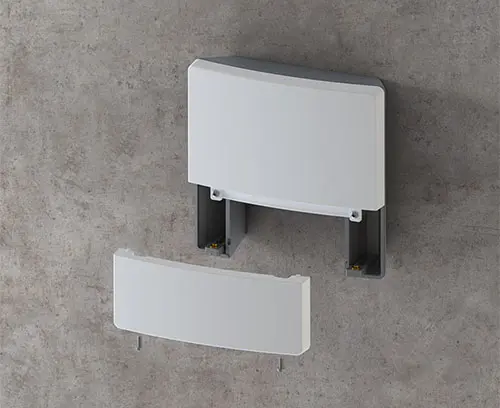 Boitier conçu en trois parties et néanmoins d’apparence uniforme grâce aux vis recouvertes. Combinaison de couleurs modernes en gris clairs et lava. 2 niveaux pour cartes à circuits imprimés, chacun avec quatre bossages de fixation dans la partie électronique. La grande qualité du matériau ASA+PC-FR permet également une utilisation sur le terrain.