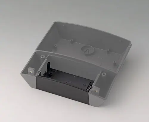 NET-BOX 140, Vers. I Boitier conçu en trois parties et néanmoins d’apparence uniforme grâce aux vis recouvertes. Combinaison de couleurs modernes en gris clairs et lava. 2 niveaux pour cartes à circuits imprimés, chacun avec quatre bossages de fixation dans la partie électronique. La grande qualité du matériau ASA+PC-FR permet également une utilisation sur le terrain.