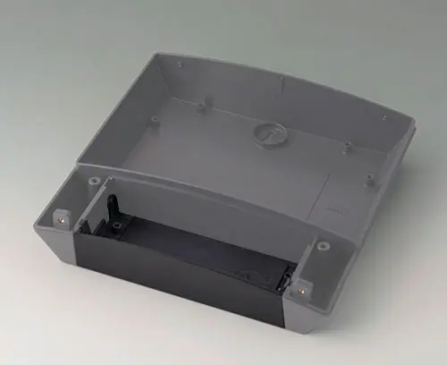 NET-BOX 180, Vers. I Boitier conçu en trois parties et néanmoins d’apparence uniforme grâce aux vis recouvertes. Combinaison de couleurs modernes en gris clairs et lava. 2 niveaux pour cartes à circuits imprimés, chacun avec quatre bossages de fixation dans la partie électronique. La grande qualité du matériau ASA+PC-FR permet également une utilisation sur le terrain.