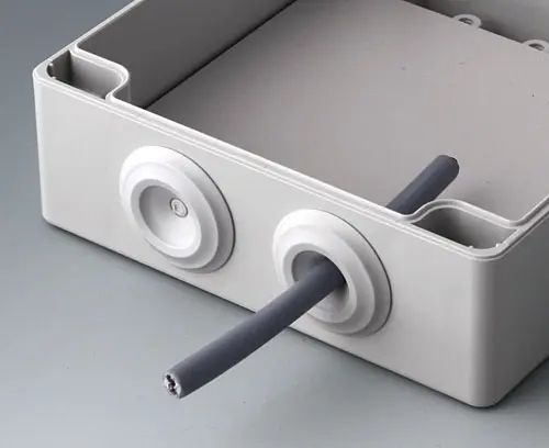 Passe-câble avec membrane facilement transperçable ; mise en place aisée. Utilisable aussi comme bouchon de fermeture. Sans halogènes. Convient pour les épaisseurs de paroi de 0,5 - 3 mm et pour diamètre de câble de 6 - 13 mm. Utilisable avec des températures de -50 °C à +125 °C. Perçage pour la fixation ø 20,5 mm.