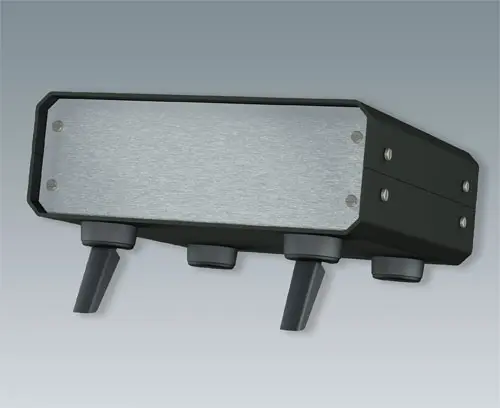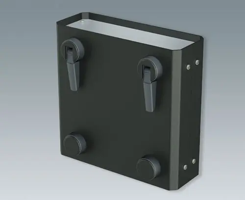 Pieds de boitiers universels utilisables pour boitiers en matière plastique ou en métal à l'épaisseur maximale de paroi de 3 mm. Le pieds basculable permet de donner à l'appareil une position inclinée. Il s'encliquette sur le pied de l'élément et peut être replié.