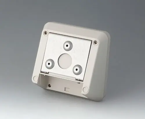 PROTEC 140, Vers. III Boitier en matière plastique à trois éléments, au design moderne et avec une inclinaison ergonomique de la surface de visualisation et de commande. Le couvercle compris dans la fourniture permet d’agrandir le volume d’installation dans un espace à part. Bossages de fixation pour les circuits imprimés et composants dans les parties supérieure et inférieure. Support mural et joint (pour accroître le degré de protection jusqu’à IP 65) dans la gamme des accessoires. Visseries avec vis inox et entrainement Torx dissimulées. Également utilisable en extérieur grâce au matériel haut de gamme et la construction robuste.