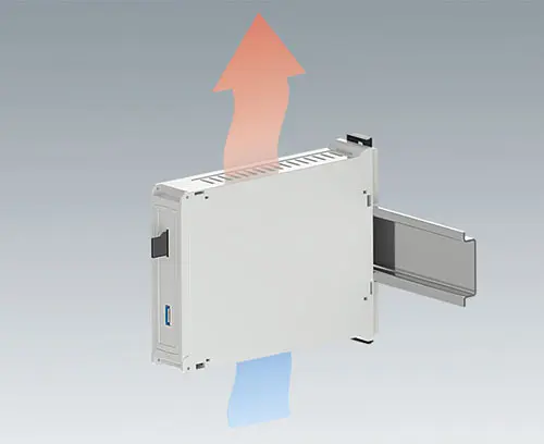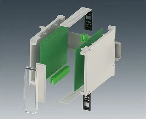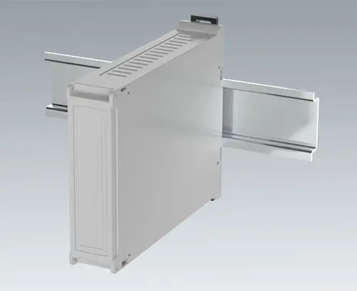 Boitier pour rail DIN avec panneaux latéraux avec aération et face avant clipsables. Connexions possibles sur 3 côtés. Pour des borniers fixes ou enfichables : 2 x 16 broches, pas de 5,08 mm. Montage simple et rapide sur rails DIN EN 60715 TH35. Ce nouveau modèle sans vis facilite l’intégration des composants électroniques et l'assemblage.