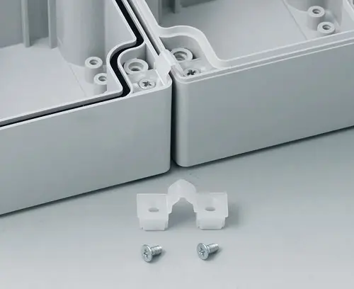 Utilisation ROBUST-BOX : ces éléments de maintien du couvercle peuvent être fixés au choix à droite, à gauche, en haut ou en bas. Pas utilisables pour les tailles 200x300 et 240x360 mm.