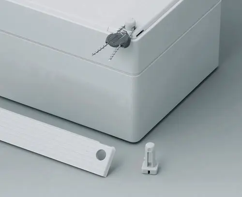 ROBUST-BOX 120 LARGE, Vers. II Boitier en plastique robuste, prédestiné aux applications électriques et électroniqus. Coquilles du boitier utilisable comme partie supérieure ou inférieure au choix. Dans chaque partie du boitier il se trouvent des filetages et bossages de fixation. Vissage hors la zone étanche. Creux d'environ 0,8 mm min. pour l'utilisation des claviers.