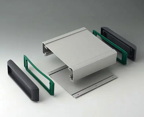 Boitier robuste et de qualité avec profilé aluminium en deux parties (sablé par billes de verre et anodisé), joints de couleur vert et couvercles en matière plastique. Très bonne accessibilité pour les opérations de montage et la mise en place des composants.