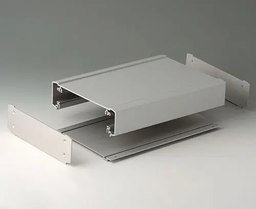 Guides horizontaux pour circuits imprimés et canaux de vissage à l’intérieur du boitier. Surfaces planes pour une intégration aisées d’interfaces. Zone de commande en creux pour la protection d’afficheurs, de claviers à membrane et d’éléments de commande.