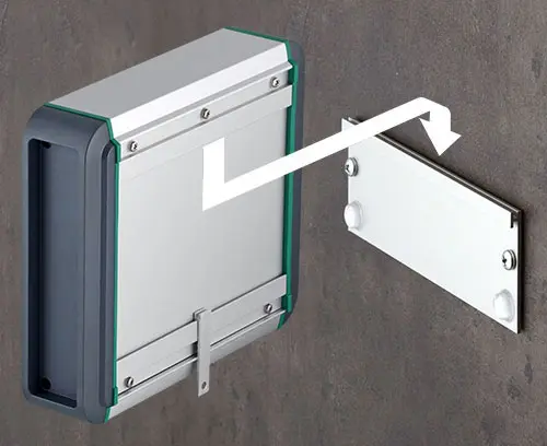 Construction en deux éléments, pour une fixation plane et solide du boitier SMART-TERMINAL au mur.