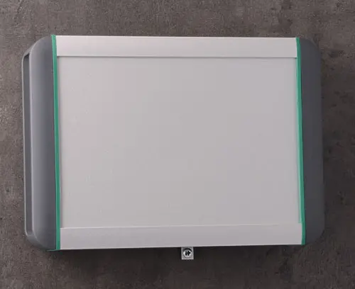 Boitier robuste et de qualité avec profilé aluminium en deux parties (sablé par billes de verre et anodisé), joints de couleur vert et couvercles en matière plastique. Très bonne accessibilité pour les opérations de montage et la mise en place des composants.