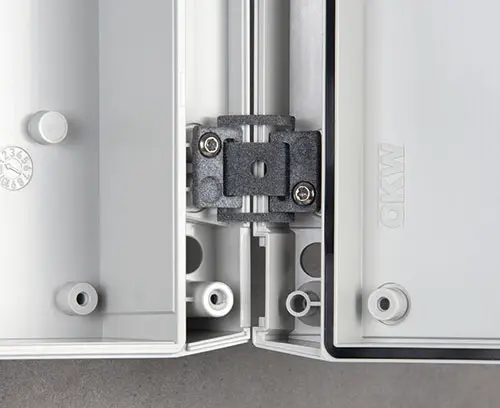 Charnières (fabrication additive) pour sécuriser la partie supérieure lors de l'ouverture du boitier.