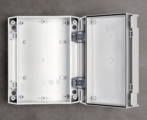 SOLID-BOX 115 Boitier industriel fonctionnel de haute qualité - robuste, étanche et élégant à la fois ! Surface du boitier polie brillante avec cache-vis design permettant un vissage dissimulé du boitier en dehors de la zone d'étanchéité. Le joint est déjà inséré dans la partie supérieure. Zone en retrait pour protéger un clavier à membrane ou une étiquette design.