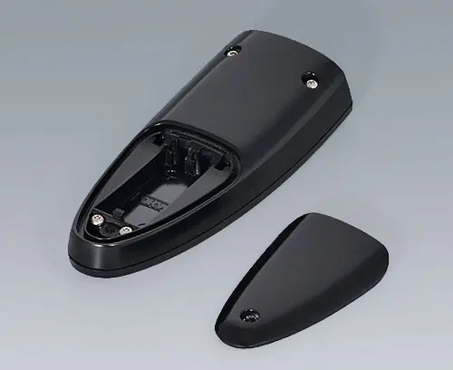 Boitier manuel en trois parties, de conception robuste et ergonomique, et au toucher agréable. Étanche jusqu’à IP 65 avec jeu de joints (accessoire). Degré de protection IP 40 sans jeu de joints. Bossages de fixation pour les circuits imprimés et composants dans les parties supérieure et inférieure.