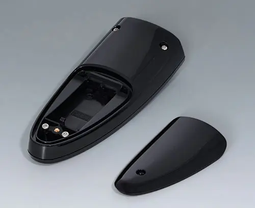Boitier manuel en trois parties, de conception robuste et ergonomique, et au toucher agréable. Étanche jusqu’à IP 65 avec jeu de joints (accessoire). Degré de protection IP 40 sans jeu de joints. Bossages de fixation pour les circuits imprimés et composants dans les parties supérieure et inférieure.