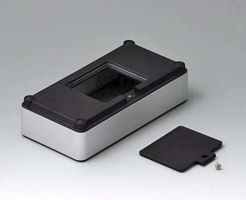 Boitier en quatre parties s’adaptant à de multiples domaines d’application. Cadre de base solide en aluminium, sablé par billes de verre et anodisé. Éléments en matériau plastique ASA+PC-FR offrant une bonne protection aux ultraviolets et résistance aux flammes. Bossages de fixation pour circuits imprimés et modules dans les parties supérieure et inférieure. Partie supérieure avec surface en creux pour la protection du clavier à membrane. Partie inférieure avec ouverture et couvercle à visser : pratique pour un compartiment pile ou pour accéder à l'intérieur, par ex. carte mémoire ou piles directement fixées sur le circuit imprimé. Kit compartiment piles pour trois piles AA avec ressorts de contact, clips de pile, support de pile bouton et éléments de fixation au mur en accessoires.