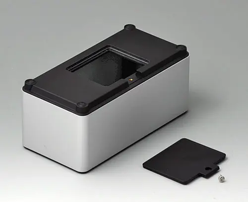 Boitier en quatre parties s’adaptant à de multiples domaines d’application. Cadre de base solide en aluminium, sablé par billes de verre et anodisé. Éléments en matériau plastique ASA+PC-FR offrant une bonne protection aux ultraviolets et résistance aux flammes. Bossages de fixation pour circuits imprimés et modules dans les parties supérieure et inférieure. Partie supérieure avec surface en creux pour la protection du clavier à membrane. Partie inférieure avec ouverture et couvercle à visser : pratique pour un compartiment pile ou pour accéder à l'intérieur, par ex. carte mémoire ou piles directement fixées sur le circuit imprimé. Kit compartiment piles pour trois piles AA avec ressorts de contact, clips de pile, support de pile bouton et éléments de fixation au mur en accessoires.