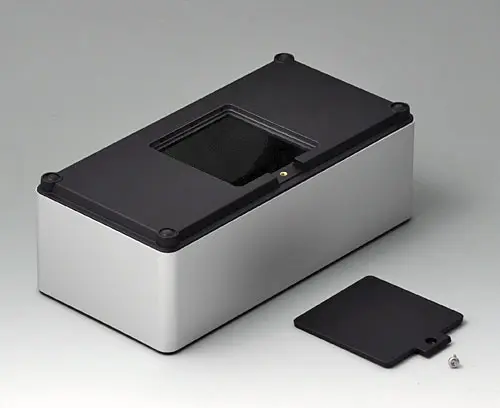 Boitier en quatre parties s’adaptant à de multiples domaines d’application. Cadre de base solide en aluminium, sablé par billes de verre et anodisé. Éléments en matériau plastique ASA+PC-FR offrant une bonne protection aux ultraviolets et résistance aux flammes. Bossages de fixation pour circuits imprimés et modules dans les parties supérieure et inférieure. Partie supérieure avec surface en creux pour la protection du clavier à membrane. Partie inférieure avec ouverture et couvercle à visser : pratique pour un compartiment pile ou pour accéder à l'intérieur, par ex. carte mémoire ou piles directement fixées sur le circuit imprimé. Kit compartiment piles pour quatre piles AA avec ressorts de contact, clips de pile, support de pile bouton et éléments de fixation au mur en accessoires.