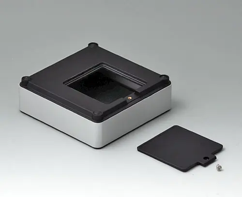 Boitier en quatre parties s’adaptant à de multiples domaines d’application. Cadre de base solide en aluminium, sablé par billes de verre et anodisé. Éléments en matériau plastique ASA+PC-FR offrant une bonne protection aux ultraviolets et résistance aux flammes. Bossages de fixation pour circuits imprimés et modules dans les parties supérieure et inférieure. Partie supérieure avec surface en creux pour la protection du clavier à membrane. Partie inférieure avec ouverture et couvercle à visser : pratique pour un compartiment pile ou pour accéder à l'intérieur, par ex. carte mémoire ou piles directement fixées sur le circuit imprimé. Kit compartiment piles pour quatre piles AA avec ressorts de contact, clips de pile, support de pile bouton et éléments de fixation au mur en accessoires.