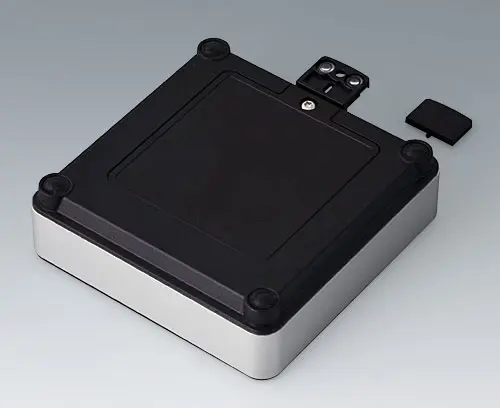 SYNERGY R100 Boitier en quatre parties s’adaptant à de multiples domaines d’application. Cadre de base solide en aluminium, sablé par billes de verre et anodisé. Éléments en matériau plastique ASA+PC-FR offrant une bonne protection aux ultraviolets et résistance aux flammes. Bossages de fixation pour circuits imprimés et modules dans les parties supérieure et inférieure. Partie supérieure avec surface en creux pour la protection du clavier à membrane. Partie inférieure avec ouverture et couvercle à visser : pratique pour un compartiment pile ou pour accéder à l'intérieur, par ex. carte mémoire ou piles directement fixées sur le circuit imprimé. Kit compartiment piles pour deux piles AA avec ressorts de contact, clips de pile, support de pile bouton et éléments de fixation au mur en accessoires.