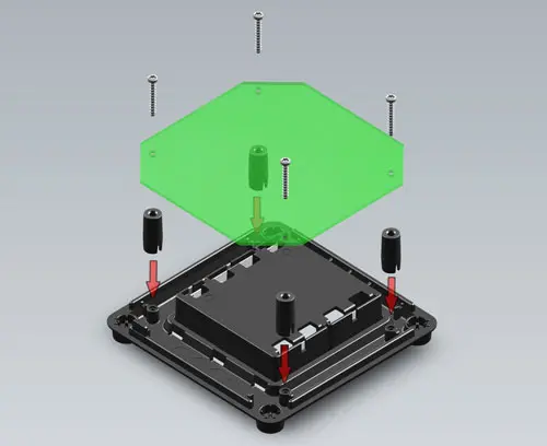 Pour rehausser les bossages de fixation des circuits dans la partie inférieure. Nécessaire lors de l'installation d'une PCB au-dessus du compartiment piles (en acc.) en partie inférieure.
