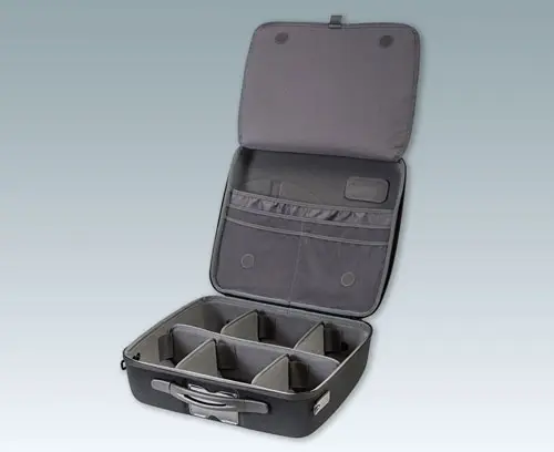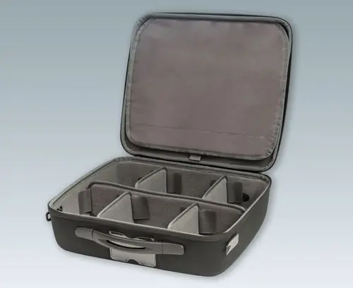 1 valise avec compartiments intégrés et couvercle à fermeture velcro, 1 cloison longue (disposition horizontale) et 4 cloisons courtes (disposition verticale)